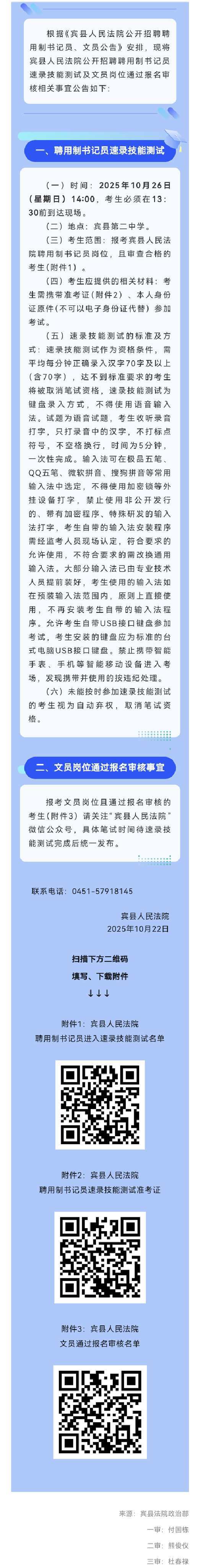 宾县人民法院公开招聘聘用制书记员速录技能测试及文员岗位通过报名审核相关事宜的公告