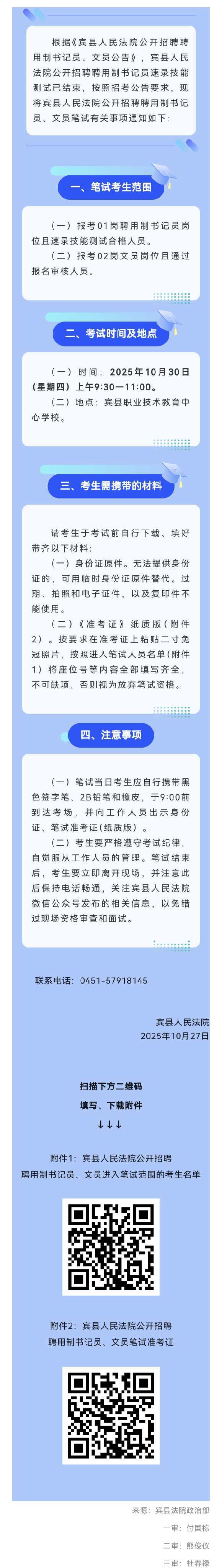 宾县人民法院公开招聘聘用制书记员、文员笔试公告