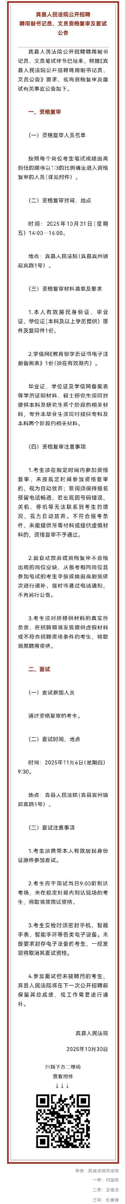 宾县人民法院公开招聘聘用制书记员、文员资格复审及面试公告
