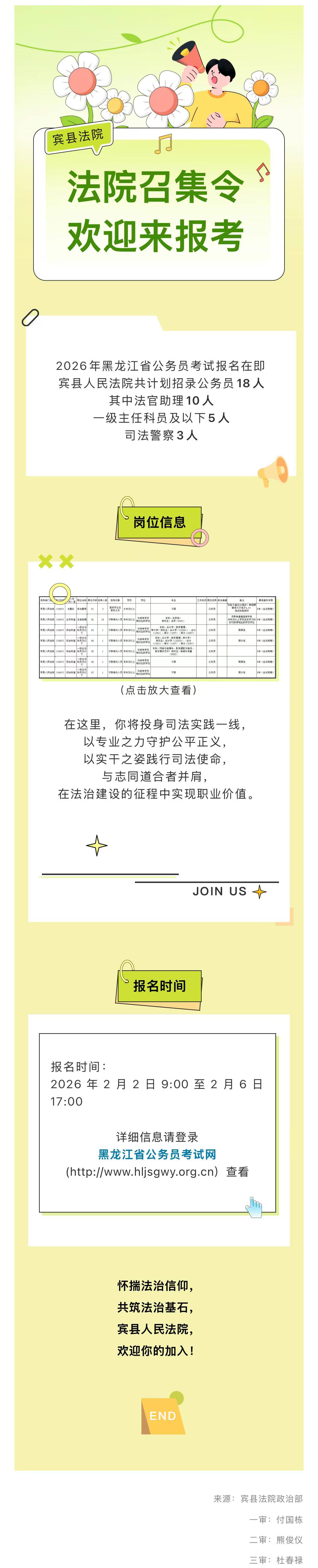 欢迎报考!宾县人民法院招录公务员18人